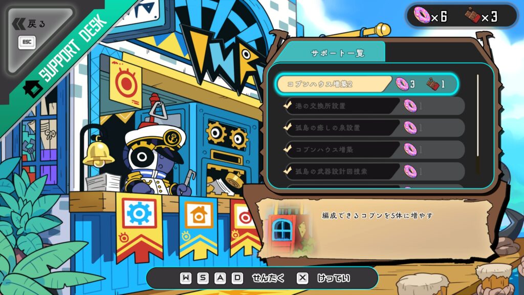 ラタポートにあるサポートデスクメニューでは冒険の手助けになる機能を解放することができます。