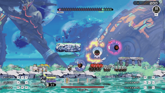 真横へ薙ぎ払い、敵にダメージと被ダメージアップデバフを与える