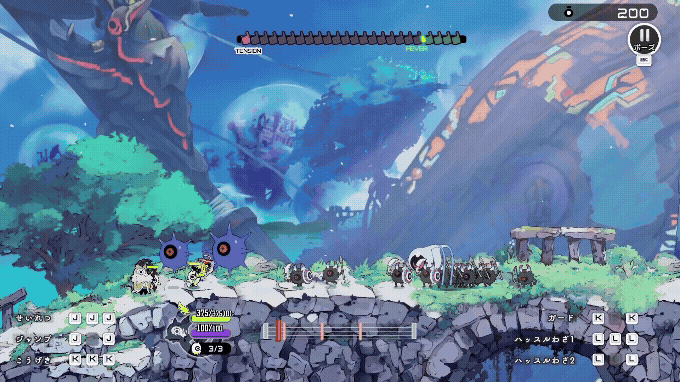 攻撃判定の発生が遅く、敵からのノックバックや状態異常に弱い代わりに、複数の敵に同時ヒットする強みを持ち、テシタ程度の敵であればノックバックさせる。